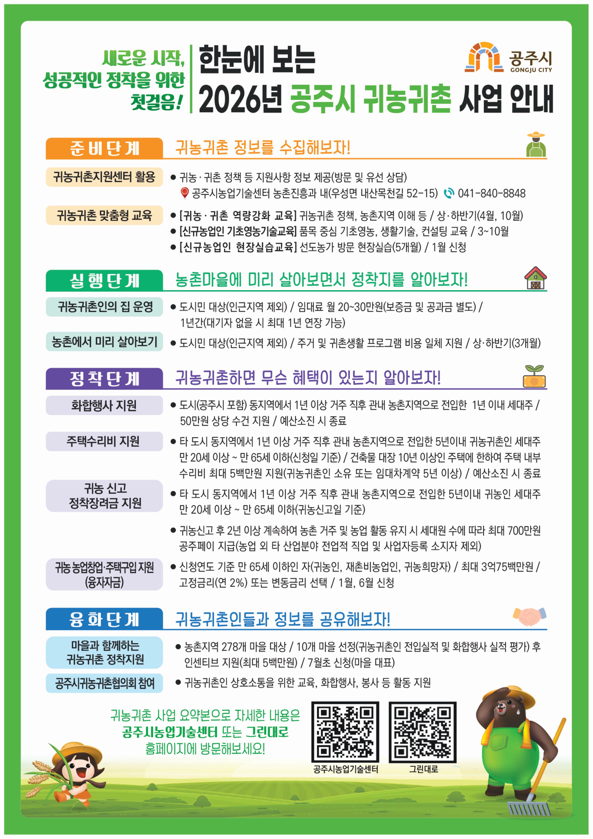 한눈에 보는 2026년 공주시 귀농귀촌 사업 안내