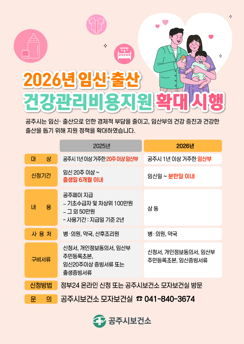 | 1530 | 2026년 임신 출산 건강관리비용지원 확대 시행 새글 | 신관동 | 5 | 2025-12-18 | 임신출산지원 변경 전단지.jpg |