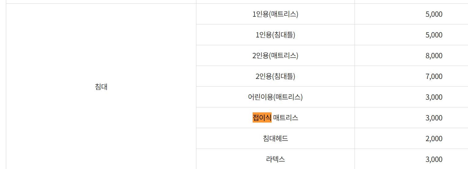 타 지역보니  접이식 매트리스가 따로 있고, 보통 3000원하던데 공주시에는 해당목록이 없네요.