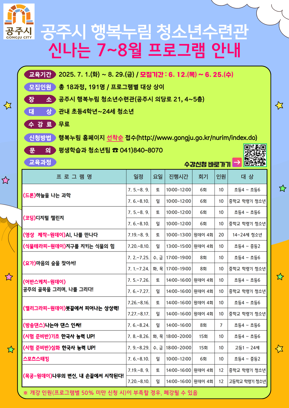 접수기간 2025-06-29 09:00 ~ 2025-07-19 18:00 지역 공주시전체
